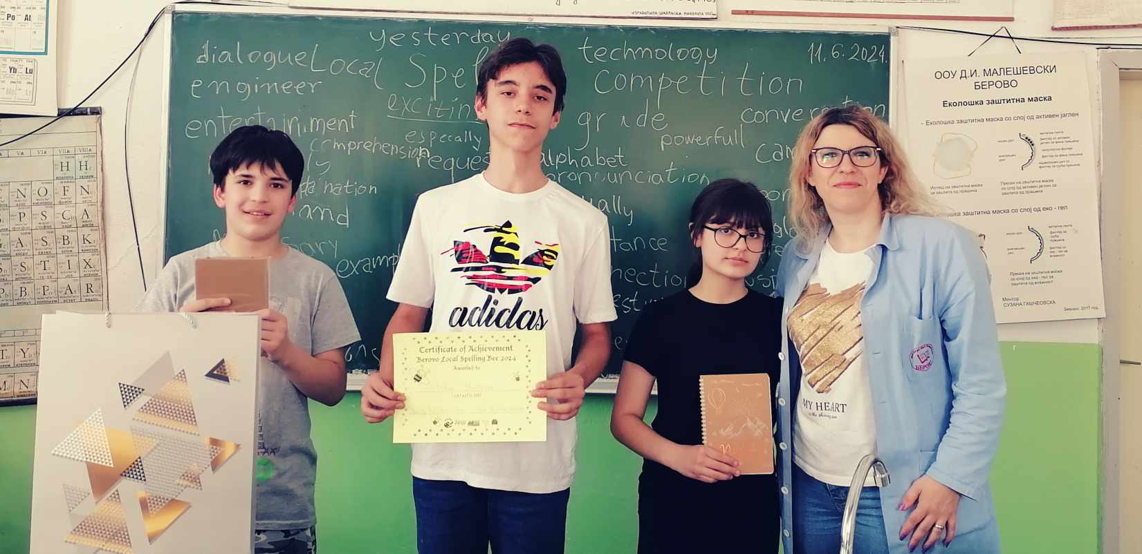 Денеска, во ООУ „Дедо Иљо Малешевски“ – Берово, се одржа завршниот Spelling Competition, натпревар по пишување зборови на англиски јазик за учениците од осмо одделение. Во натпреварот учествуваа 10-те најдобри ученици од целата генерација, кои покажаа одлично знаење и брзина во спелувањето.