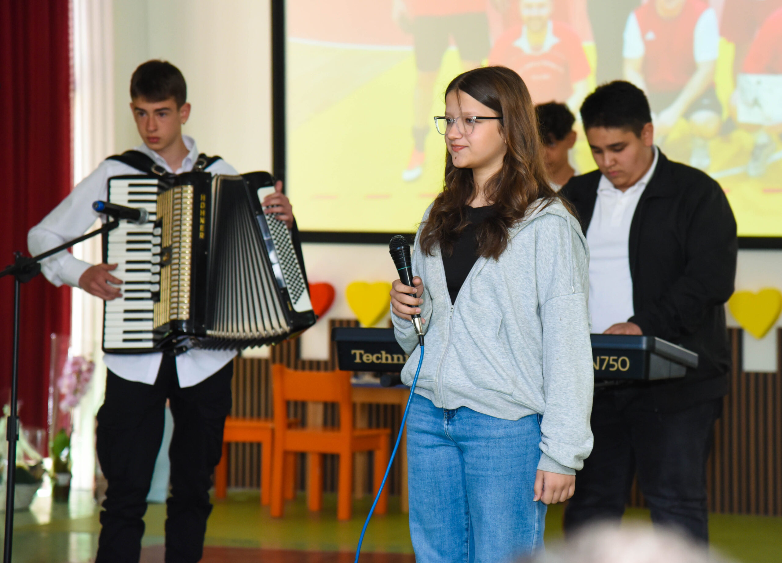 Потоа, сите заедно се упативме кон холот на училиштето, каде нѐ чекаше прекрасна свечена програма. Нашите вредни ученици, со помош на своите наставници, подготвија шаренолики настапи – од песни и рецитали до драмски точки и игри. Низ смеа, аплаузи и многу позитивна енергија, тие покажаа што знаат и умеат, правејќи ја атмосферата навистина празнична.