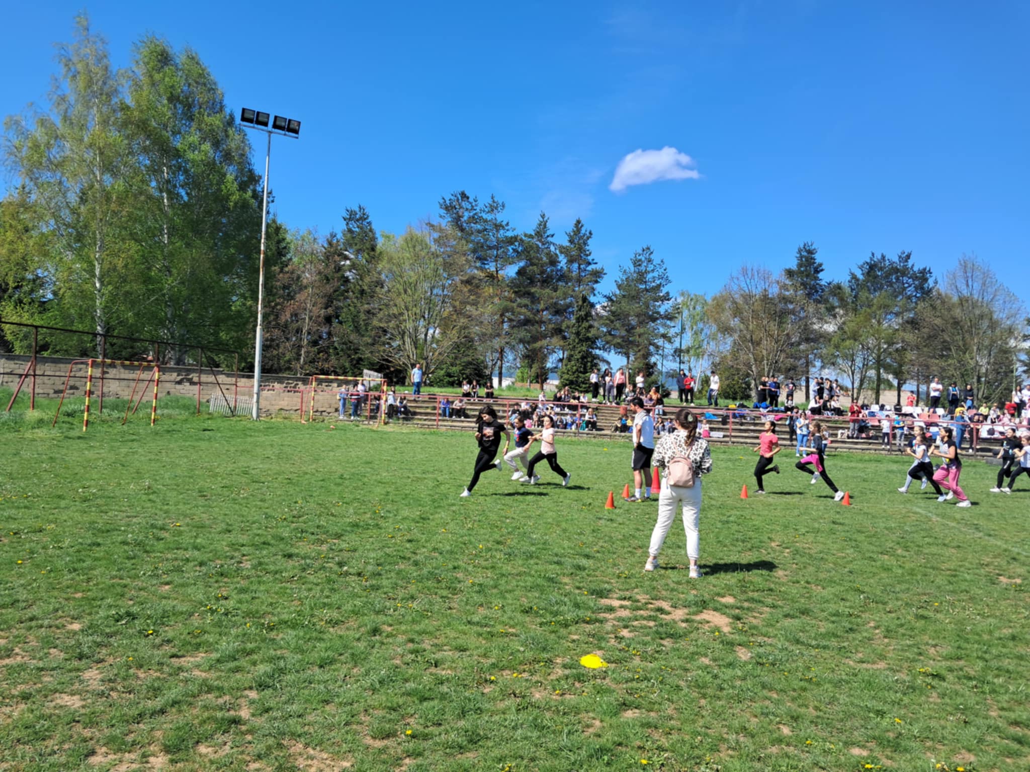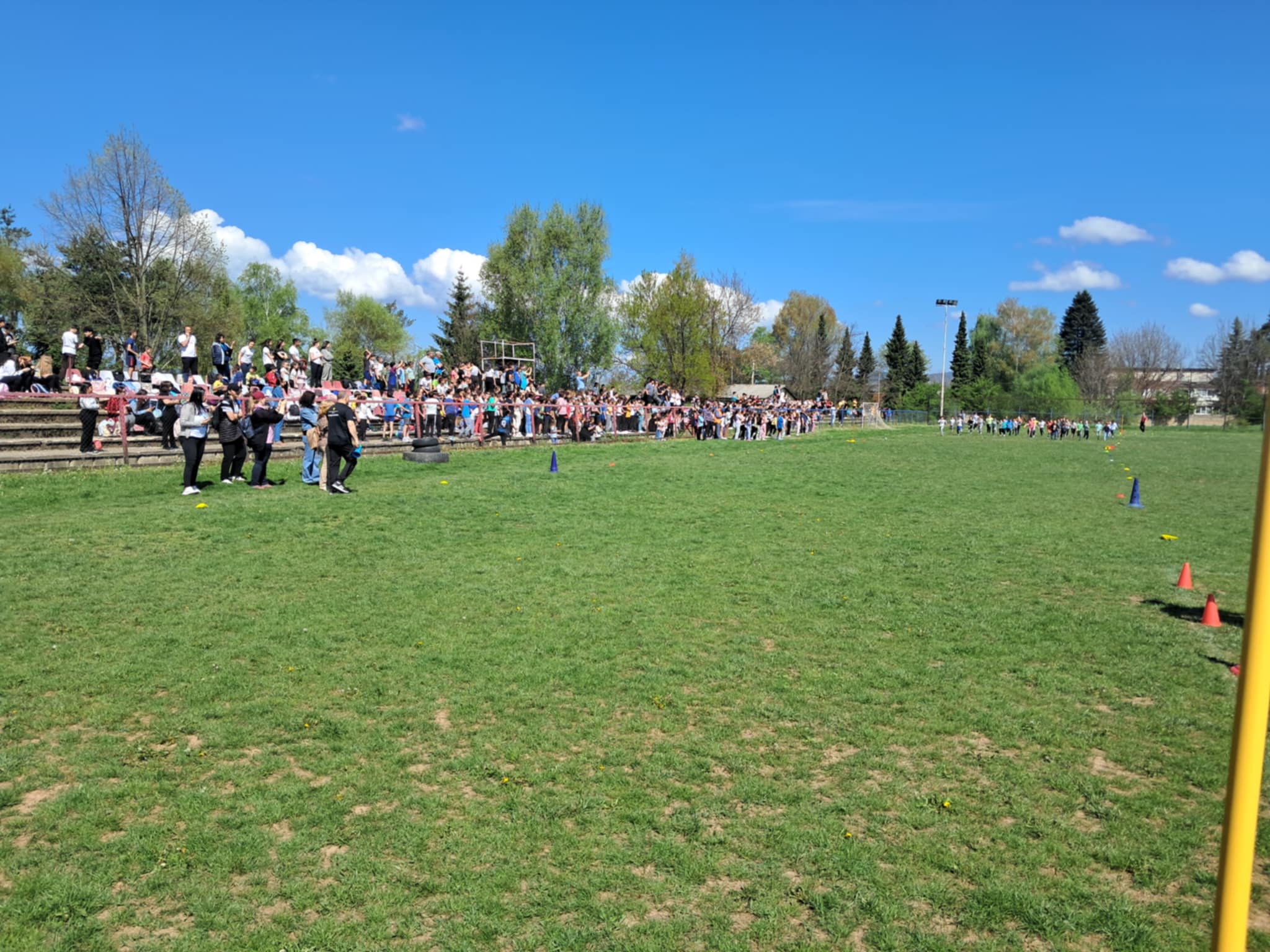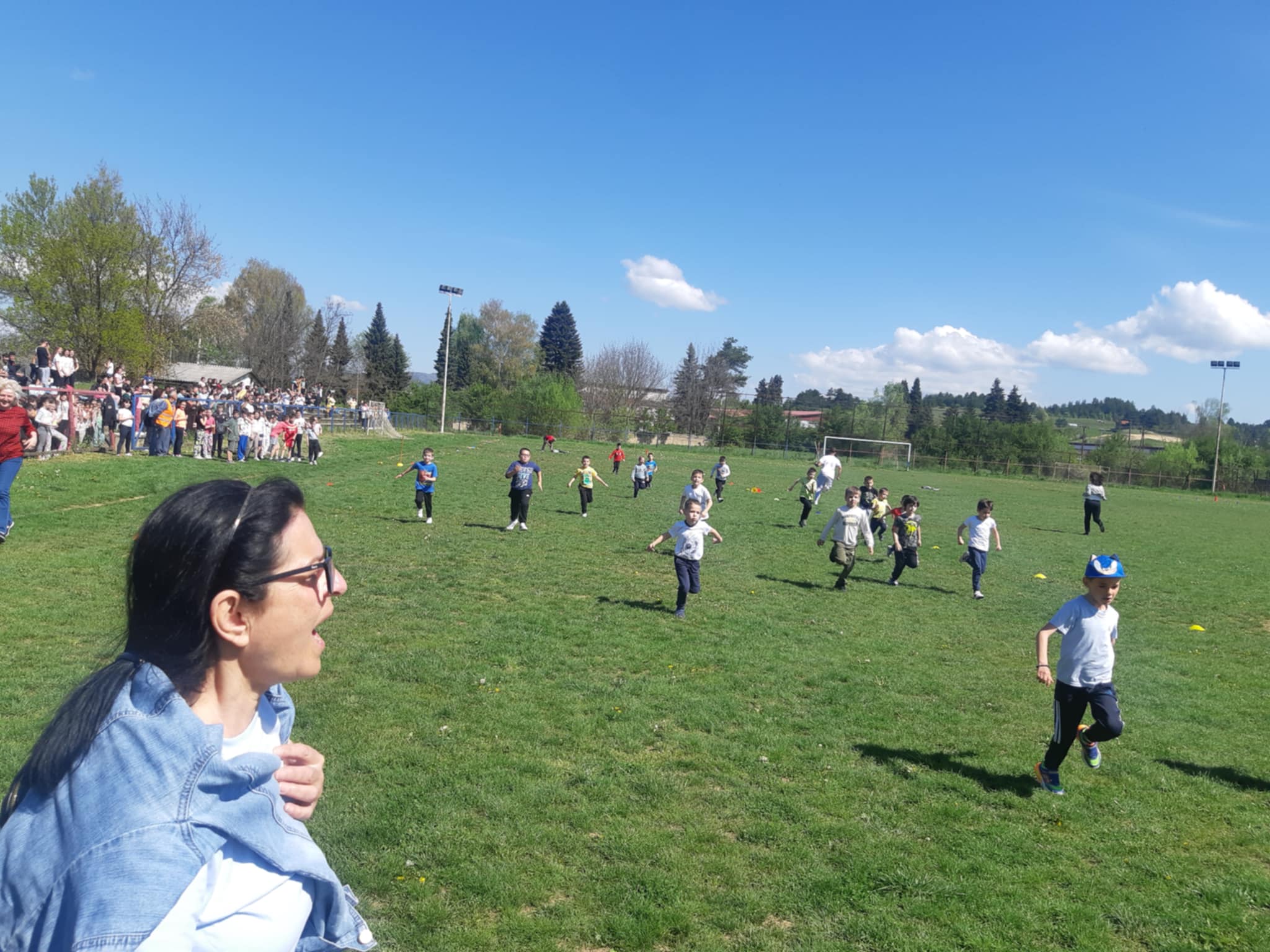 Градскиот стадион беше исполнет со енергија и детска смеа, додека нашите ученици со нетрпение го очекуваа стартот на трките. Кросот, како и секогаш, имаше двоен карактер – рекреативен, за сите кои сакаа да уживаат во трчањето и дружењето, и натпреварувачки, за оние кои сакаа да ги покажат своите спортски вештини и брзина.