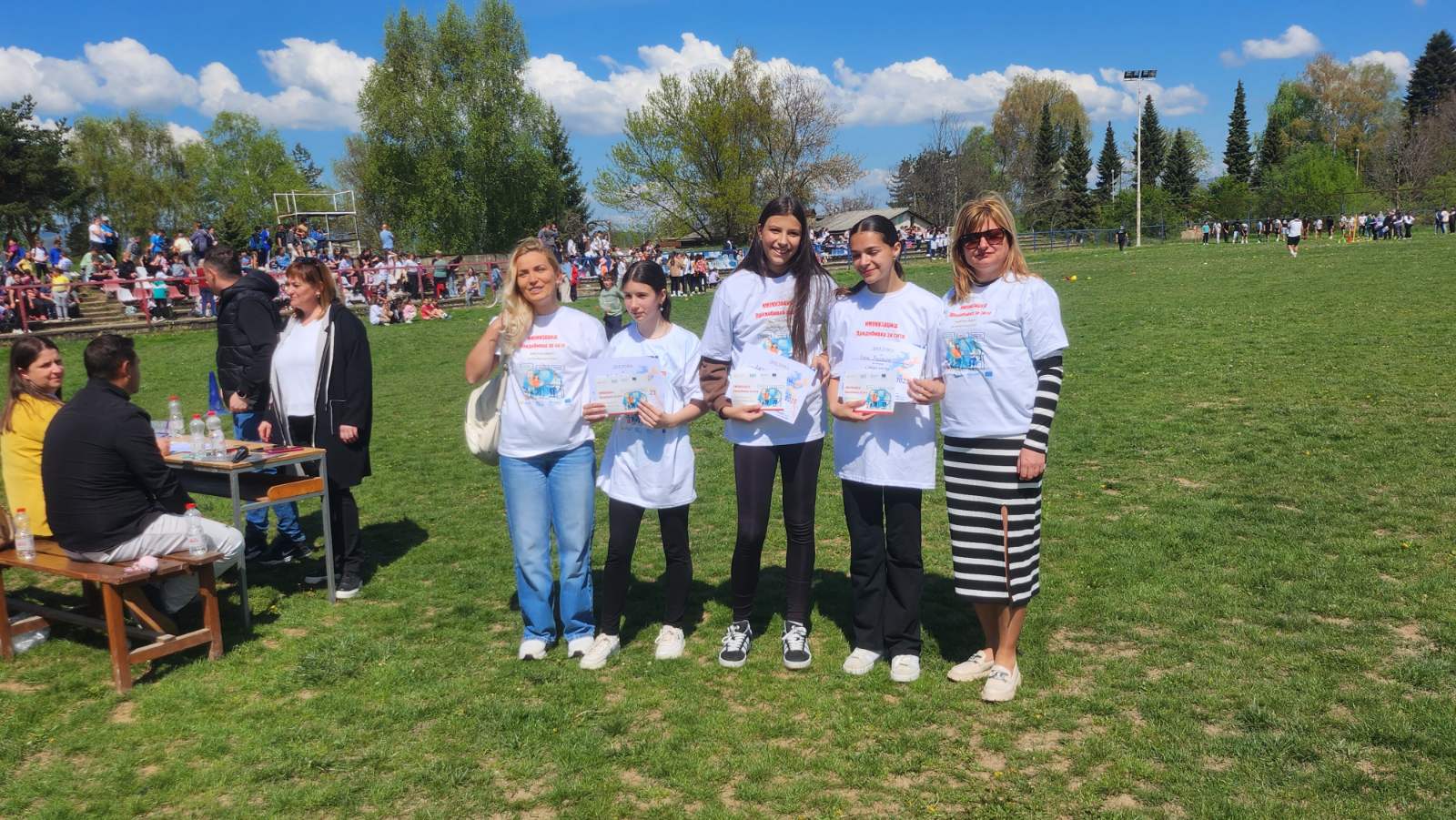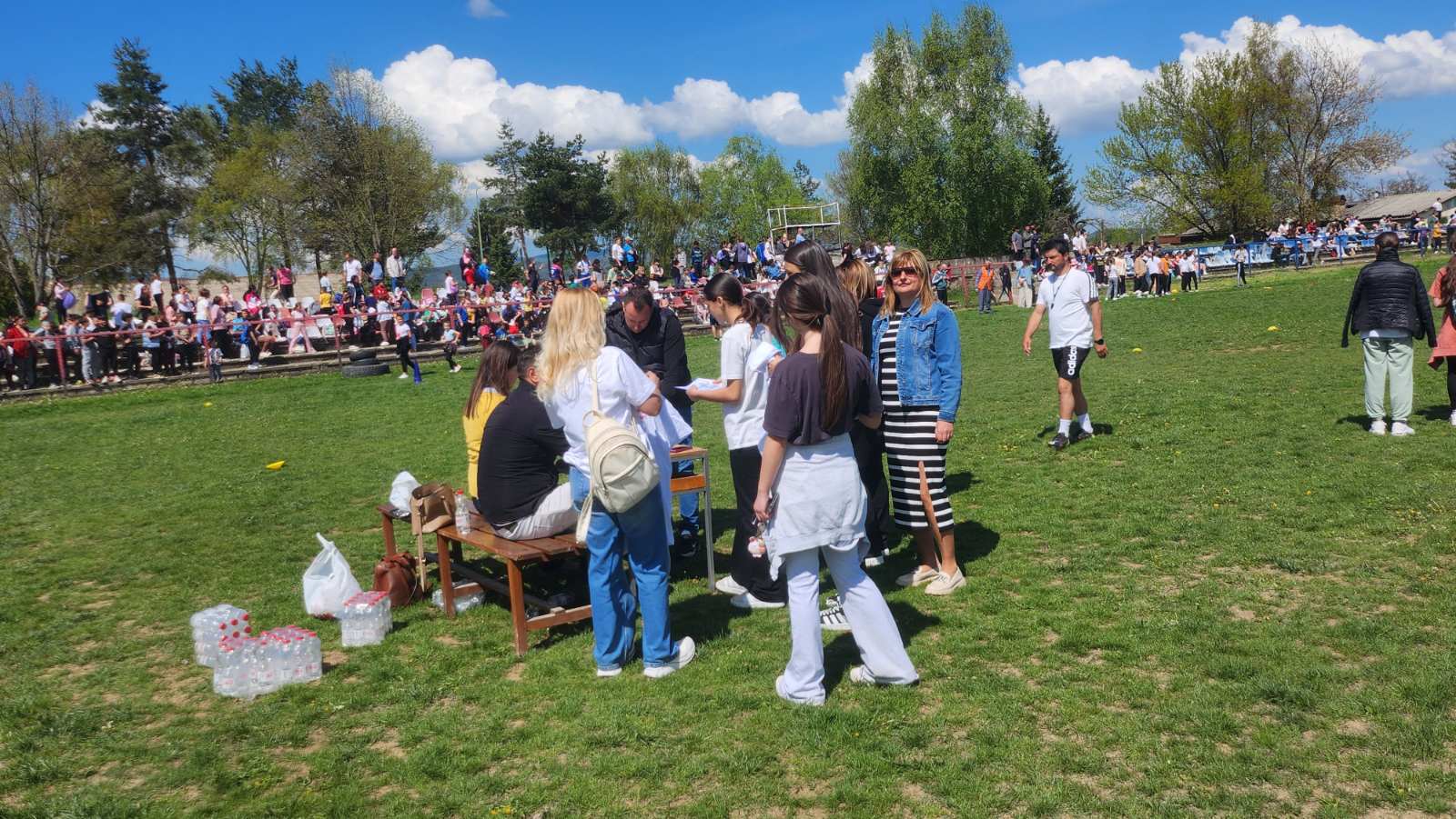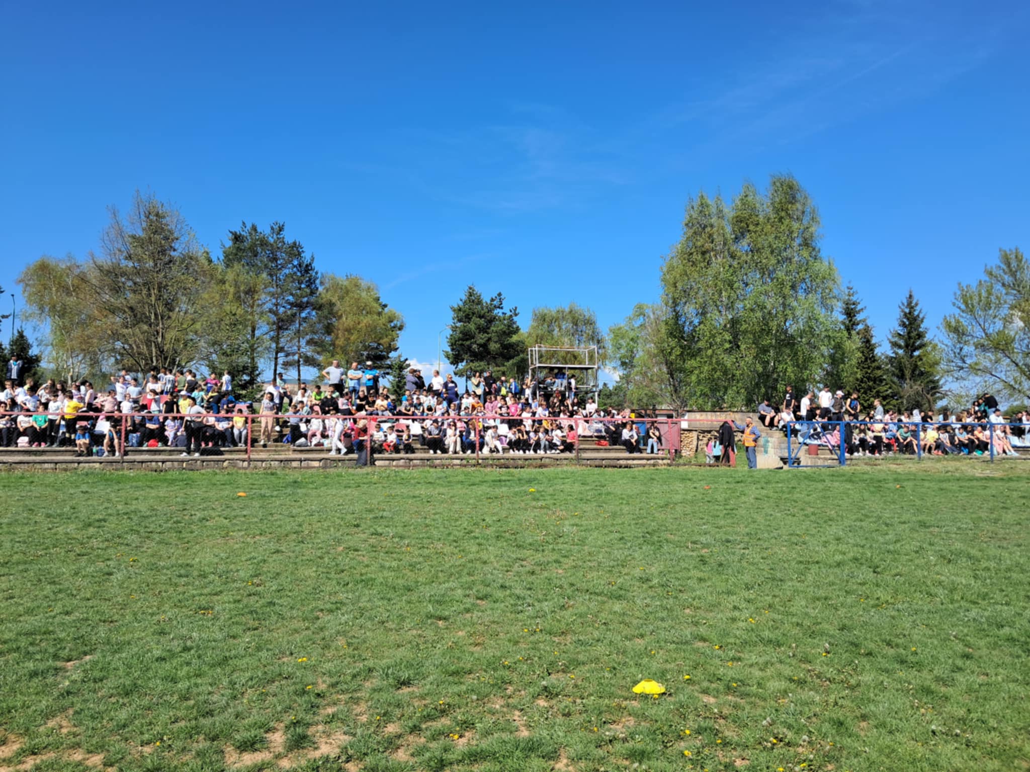 Градскиот стадион беше исполнет со енергија и детска смеа, додека нашите ученици со нетрпение го очекуваа стартот на трките. Кросот, како и секогаш, имаше двоен карактер – рекреативен, за сите кои сакаа да уживаат во трчањето и дружењето, и натпреварувачки, за оние кои сакаа да ги покажат своите спортски вештини и брзина.